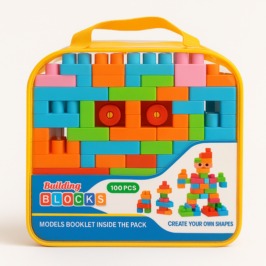 Building Blocks Set for Kids, 100 Pieces with Carry Case, Toys with Model Book