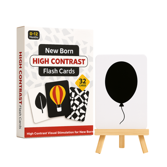 High Contrast Flash Cards for Newborns, 32 Cards with Stand (0-12 Month)